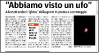 Sappiamo che all’indirizzo unico per segnalazioni del Centro Ufologico Nazionale: ufoline@hotmail.it stanno arrivando molti messaggi con testimonianze di avvistamenti, e che i nostri Inquirenti di zona stanno lavorando per recuperare informazioni e dati utili per la ricerca e la casistica italiana.
