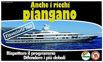 Lo scopo dell’attuale finanziaria consiste principalmente nel riequilibrare i conti per rientrare nei parametri di Maastricht, ma il suo “sigillo” è stato simbolicamente espresso dal famoso manifesto diffuso da Rifondazione Comunista con una barca con sotto scritto :”Anche i ricchi piangano”.