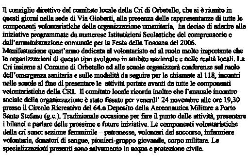 ADESIONE DELLA CRI DI ORBETELLO ALLE INIZIATIVE PER LA FESTA DELLA TOSCANA