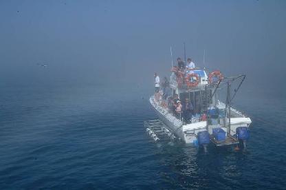 Alle 9 eravamo in mare, ma una persistente nebbiolina ci ha impedito di vedere bene il comportamento degli animali.