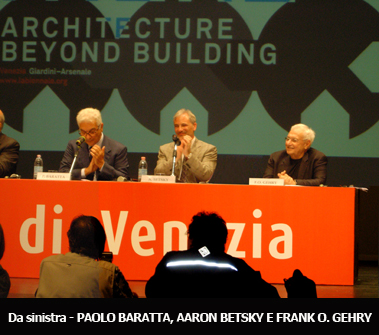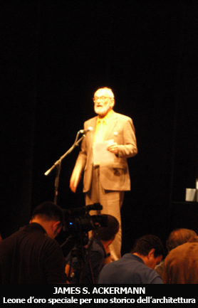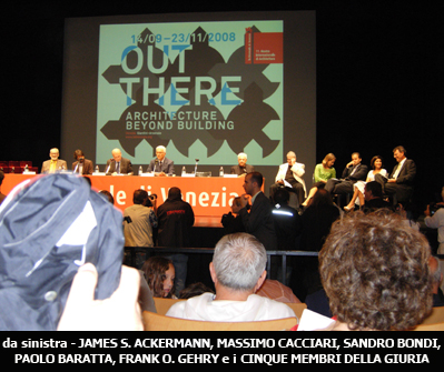 Il primo premio consegnato è stato il Leone d’oro alla carriera, che Il ministro Bondi ha dato nelle mani di uno “splendido” Frank O. Gehry, che alla soglia degli 80 anni gioca e scherza con i fotografi scatenando l’ilarità dei presenti. Dopo il breve discorso di ringraziamento, nel quale l’architetto ha avuto modo di ricordare l’origine del suo rapporto con la Biennale di architettura, risalente alla prima edizione della stessa (1980), il sindaco di Venezia, Massimo Cacciari, ha consegnato il Leone d’oro per uno storico dell’architettura a James S. Ackermann.