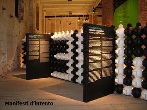 Alle Corderie dell’Arsenale la mostra apre con Hall of Fragments di David Rockwell con Casey Jones e Reed Kroloff. Una sala buia dove schermi di varie dimensioni proiettano una selezione di film del passato, fantascientifici e storici; film che ricreano architetture di tempi lontani o propongono le forme di quella futura (ormai attuale), con l’idea di trovare scene in cui il percettivo e l’immaginazione superano il fisico e il reale. Dopo Hall of Fragments inizia il percorso tra le grandi Installazioni, accompagnate dai Manifesti d’intento proposti dagli stessi architetti.
