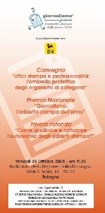 Essa sarà coordinata da Ruben Razzante (docente Università Cattolica e direttore Scuola di giornalismo della Basilicata) e vi parteciperanno Franco Siddi (Segretario Generale Federazione Nazionale della Stampa Italiana), Enrico Paissan (Vice-Presidente Consiglio Nazionale Ordine dei Giornalisti), Maria Luigia Casalegno (Presidente Gruppo Giornalisti Uffici Stampa Emilia-Romagna), Paolo Corallo (vicedirettore Ansa), Rossend Domenech (giornalista ed inviato ‘El Periodico’ – Barcellona), Anne Lenir (giornalista ed inviato in Italia ‘RFI – Radio France International’), Sandra Zampa (Deputato PD) e Salvo Fleres (Senatore PDL).