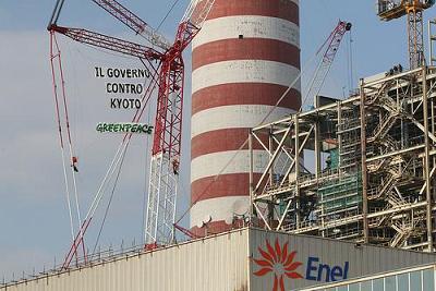 Gli attivisti di Greenpeace sono entrati stamattina nella centrale Enel di Civitavecchia e hanno aperto due enormi striscioni a oltre cento metri di altezza con scritto Il governo contro Kyoto e mai più carbone. In contemporanea dalla nave di Greenpeace ‘Arctic Sunrise’, scendendo con dei gommoni, degli attivisti hanno scritto sul molo Quit coal, no carbone. Sulla nave è stato affisso No carbone. Sì Energy Revolution. Il comunicato del Movimento No Coke Alto Lazio, la risposta dei lavoratori della centrale e di Enel.