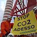 Gli attivisti sono entrati nella centrale e – a oltre cento metri di altezza – hanno aperto due enormi striscioni con il messaggio Il governo contro Kyoto e mai più carbone.